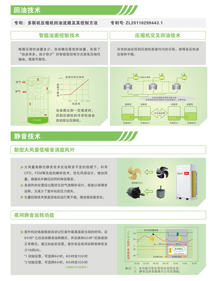 TCL直流变速技术采用高技术含量的无刷直流电动机,永久磁铁转子,不需要外部供给电流,减少损耗,效率大幅度提高。磁体排列更科学,磁力线集中度更高,再加上含稀土钕的磁体,则可较交流调速节能高达25%。特有大容量直流变速压缩机,高压腔涡旋压缩机,精确的直流变速控制,精确的数字信号处理方式。TCL钛金变频空调采用的钛金材料保证空调换热性能的长久稳定,保证空调整机的正常运行;此外TCL钛金空调采用多重参数保护设置,全方位保护空调平稳安全运行。